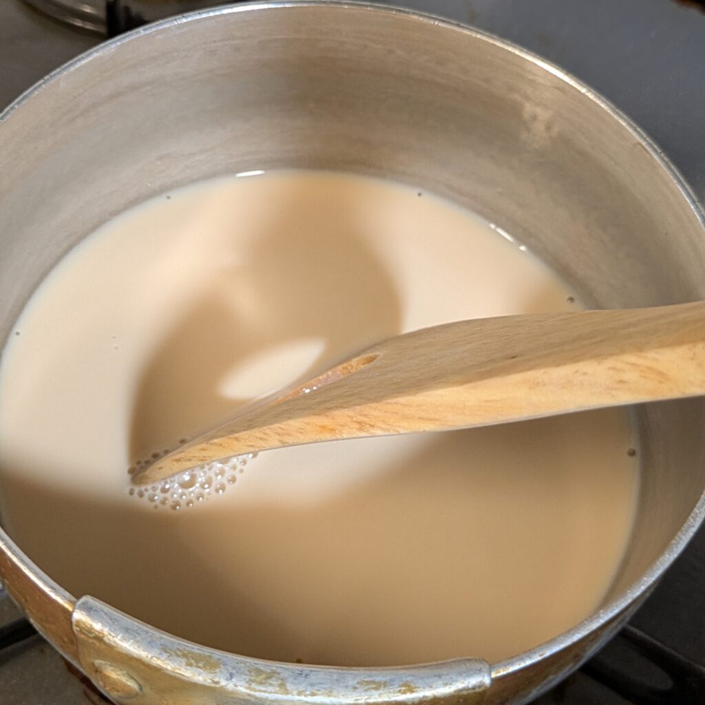 鍋の底から小さい泡が出るくらい。(沸騰させてしまうと固まりづらくなる為注意!)